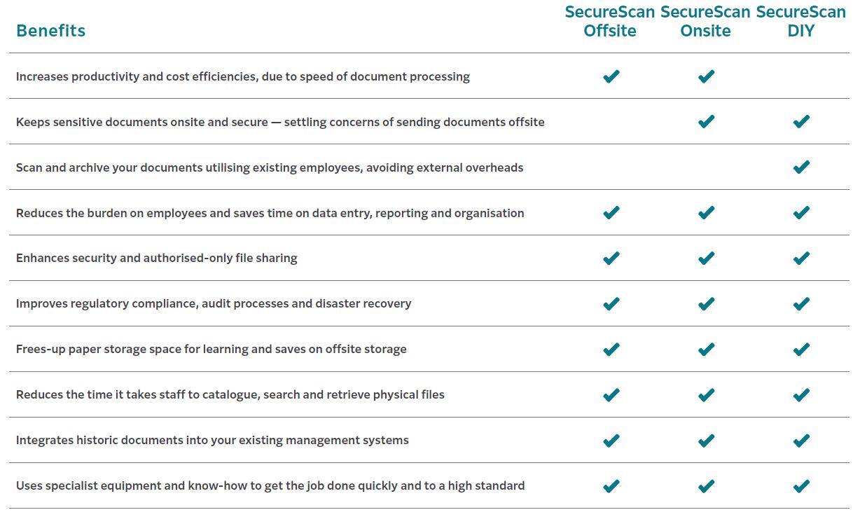 SecureScan by FUJFILM Business Innovation can securely digitise and index all of your council’s records to help streamline systems, allow for the destruction of physical records to free up space and make records more accessible to citizens by reducing the time it takes for staff to retrieve them. Our SecureScan service offers three accessible scanning solutions that could help your council”